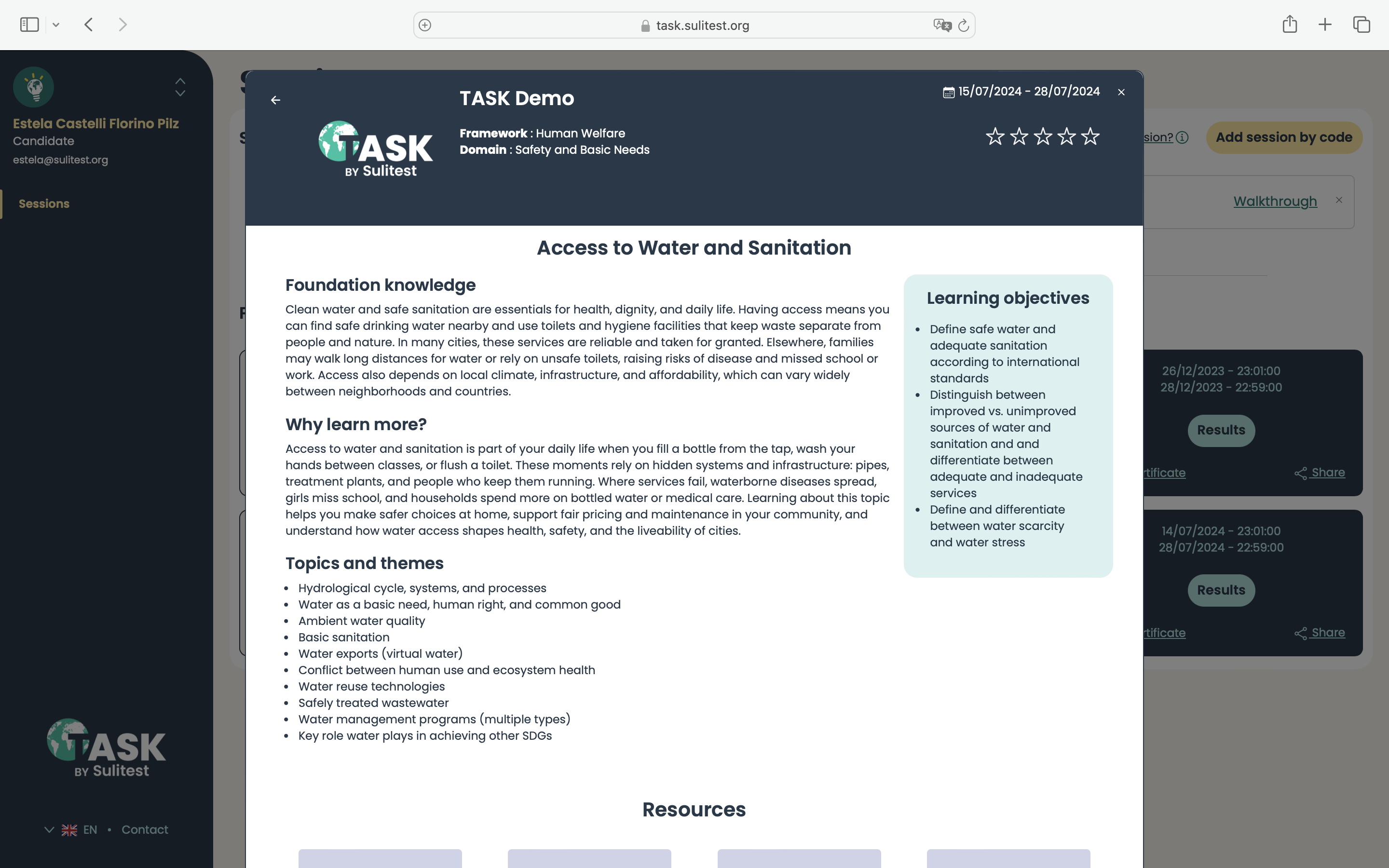 To prepare for the assessment, we offer your institution the resources like the “Intro2TASK™”, a compilation of videos and other materials introducing you to the subjects covered by the assessment, and other pedagogical material.